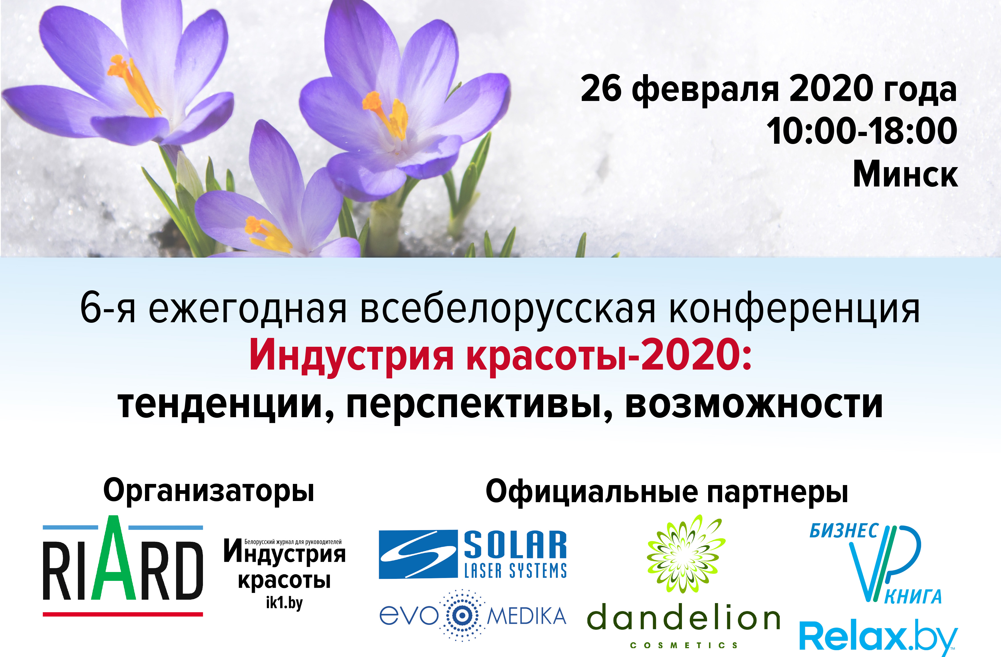 Вот и состоялась очередная — уже 6-я по счету — ежегодная всебелорусская конференция «Индустрия красоты-2020: тенденции, перспективы, возможности». 26 февраля в Минске в большом конференц-зале гостиницы «Юбилейная» собралось около 100 участников — владельцев и директоров парикмахерских, салонов красоты, барбершопов, нейл-студий и т.д. со всей Беларуси — обсудить наболевшие вопросы и услышать рекомендации успешных коллег.